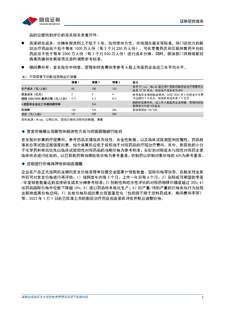 国信证券:医药行业重大政策点评:国家医保局发布《新冠治疗药品价格形成指引(试行)》,有望实现合理定价机制.pdf