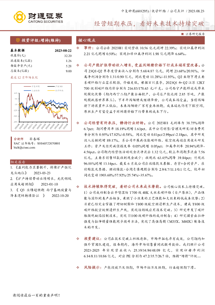 财通证券:中复神鹰(688295)-经营短期承压,看好未来技术持续突破.pdf