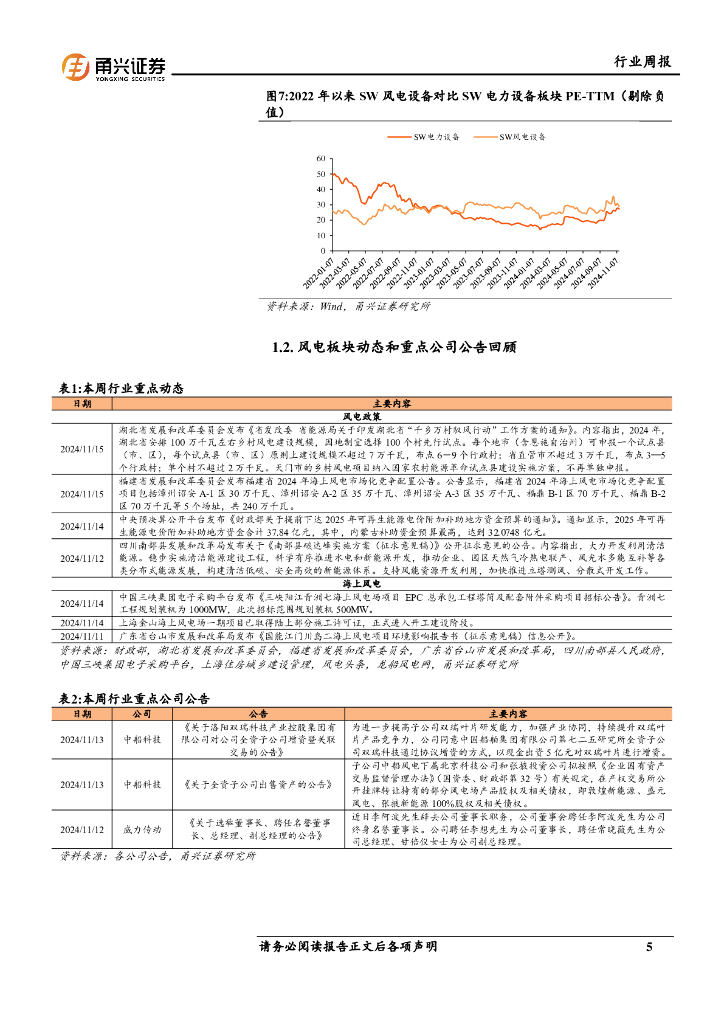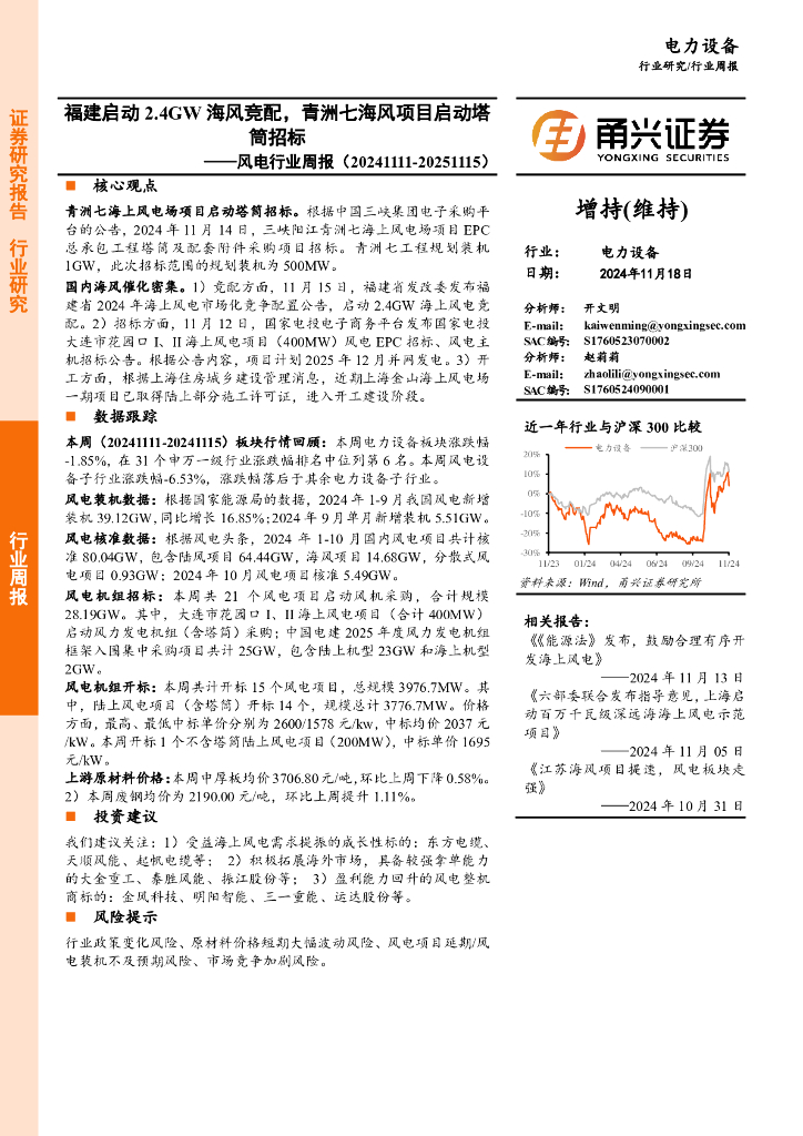 甬兴证券:风电行业周报:福建启动2.4GW海风竞配,青洲七海风项目启动塔筒招标.pdf