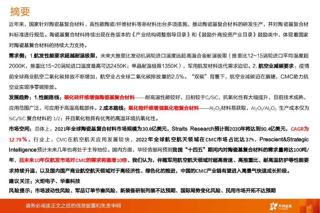 天风证券:国防军工:陶瓷基复合材料应用加速,军民需求共振空间广阔.pdf