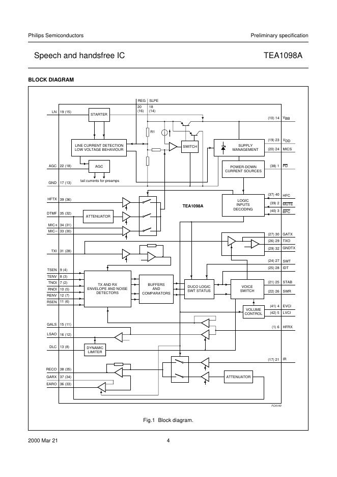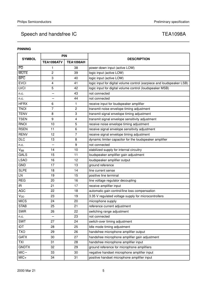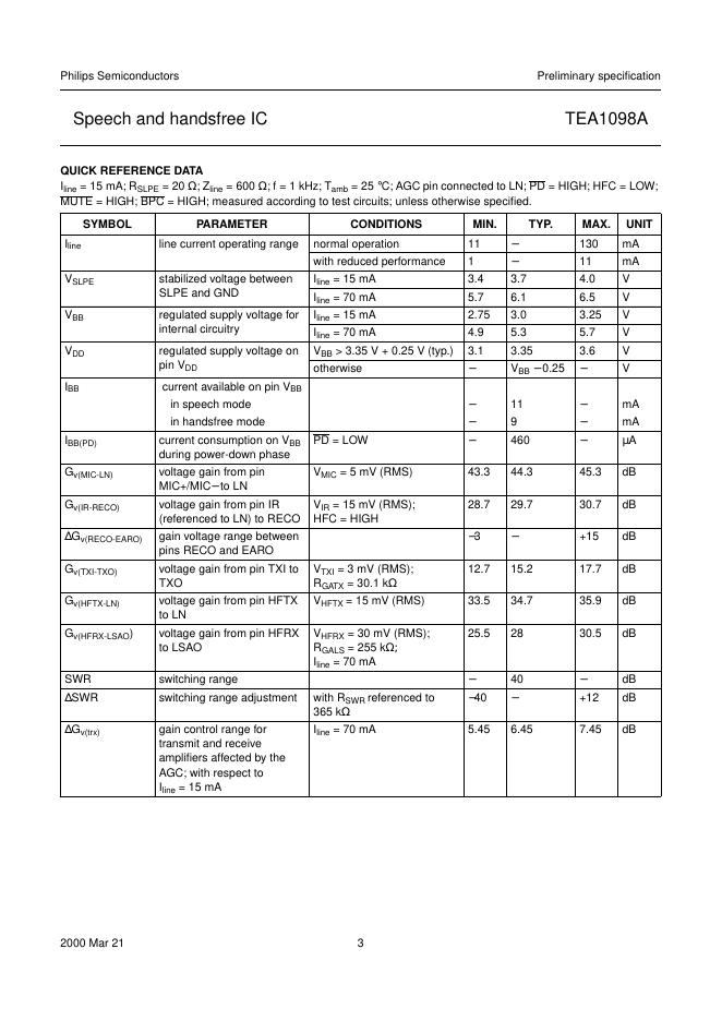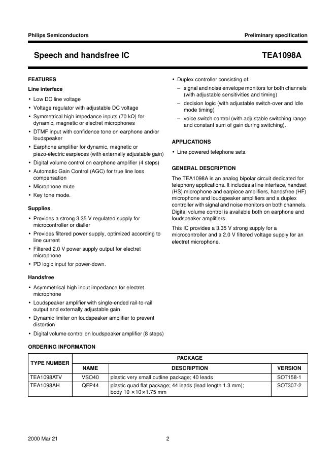 philips TEA1098A Speech and handsfree IC 数据手册.pdf