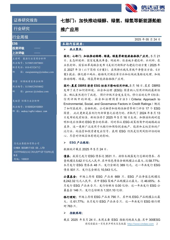 信达证券:ESG行业周报:七部门:加快推动绿醇、绿氨、绿氢等新能源船舶推广应用.pdf