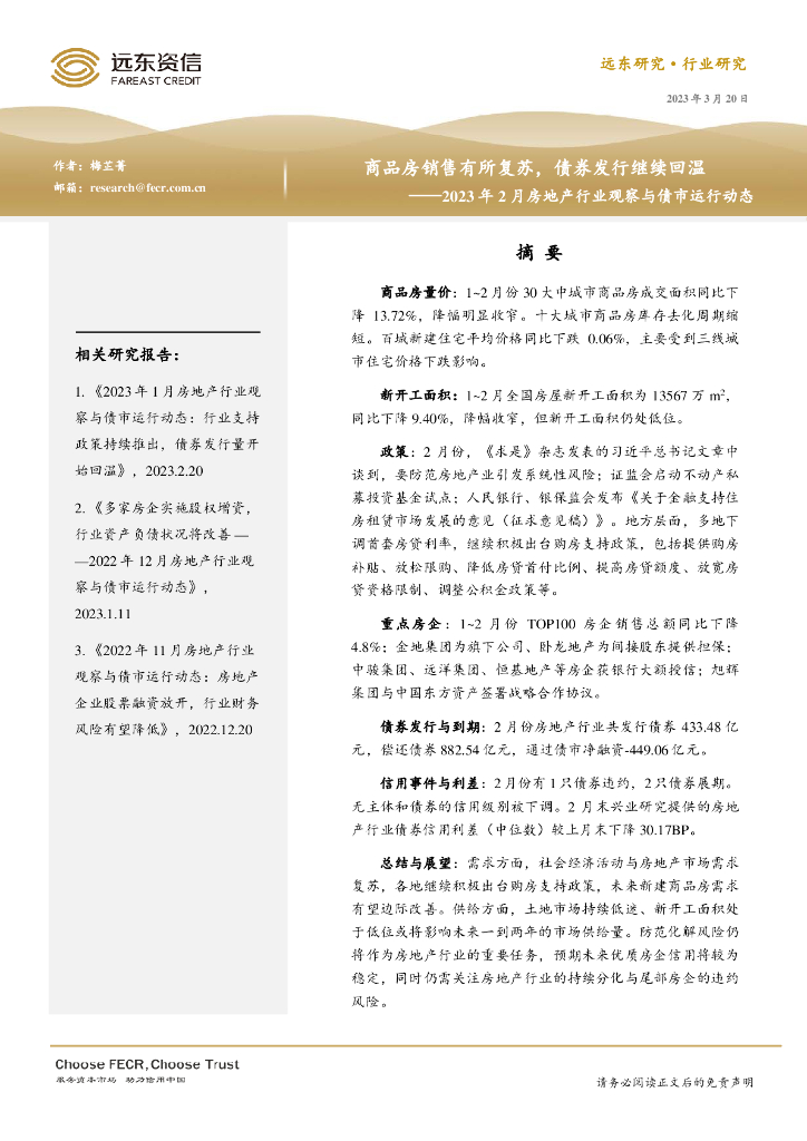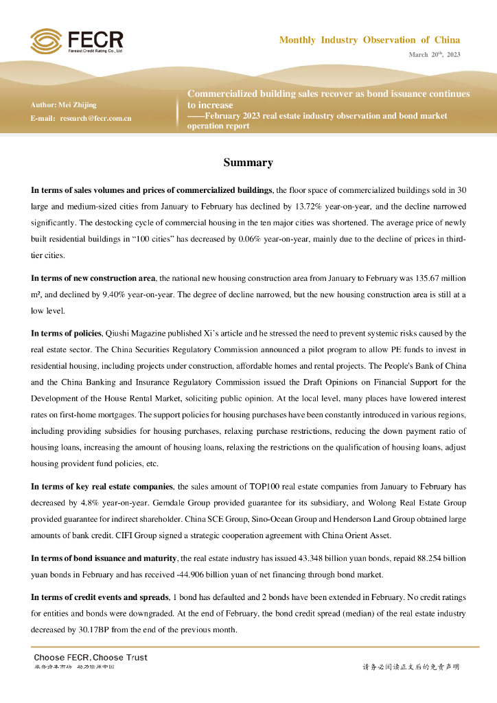 远东资信:商品房销售有所复苏,债券发行继续回温——2023年2月房地产行业观察与债市运行动态.pdf
