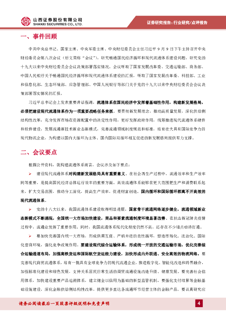 山西证券:交通运输:中央财经委员会第八次会议点评:建设现代流通体系,构建新发展格局.pdf