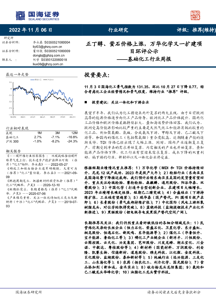 国海证券:基础化工行业周报:正丁醇、萤石价格上涨,万华化学又一扩建项目环评公示.pdf