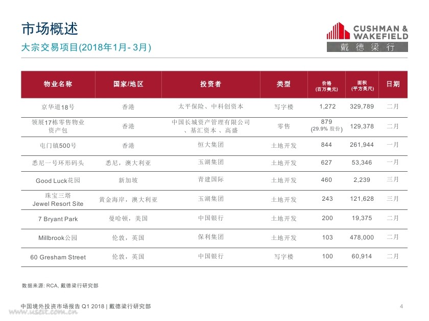 戴德梁行:2018年第一季度中国境外投资报告.pdf