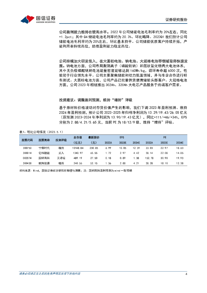 国信证券:鹏辉能源(300438)-2022年报及2023年一季报点评:储能电池出货量高速增长,盈利能力稳定高位.pdf
