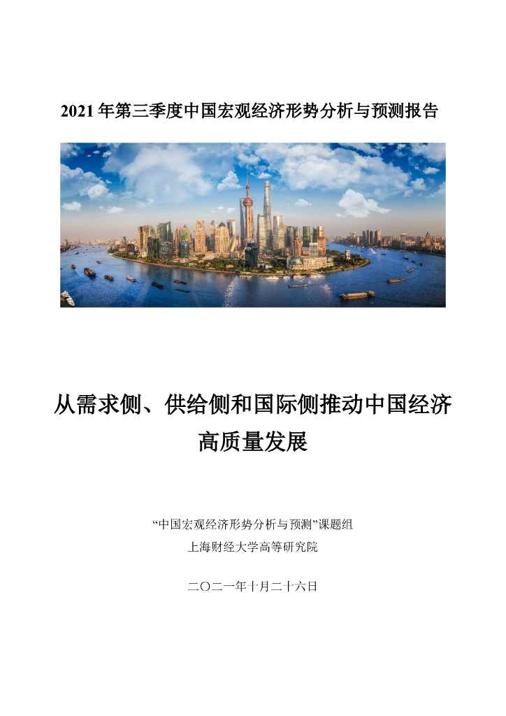 上海财经大学:2021年第三季度中国宏观经济形势分析与预测报告——从需求侧、供给侧和国际侧推动中国经济 高质量发展.pdf