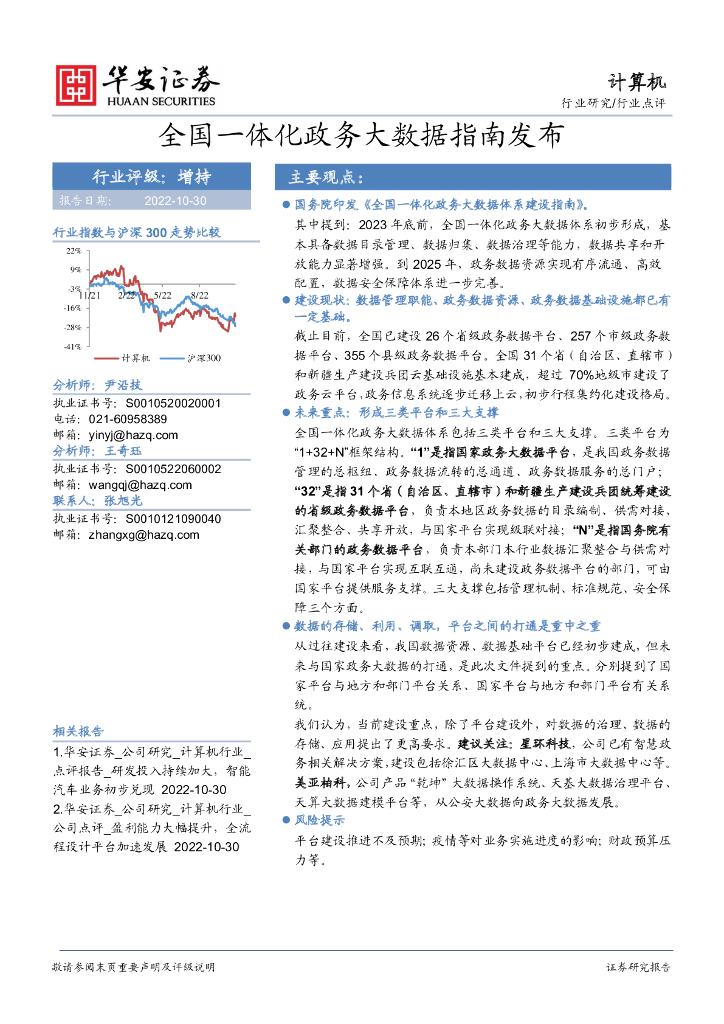 华安证券:计算机:全国一体化政务大数据指南发布.pdf