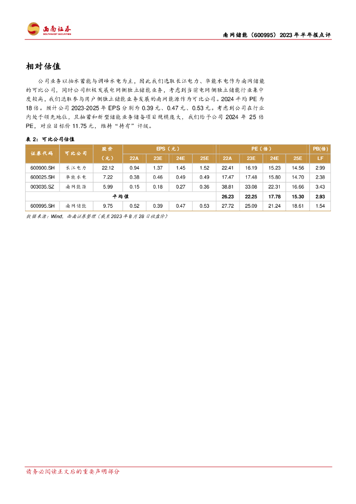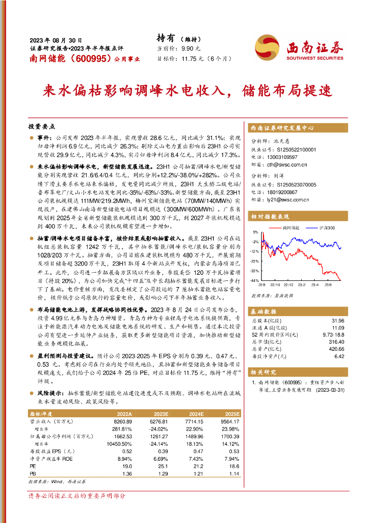 西南证券:南网储能(600995)-来水偏枯影响调峰水电收入,储能布局提速.pdf