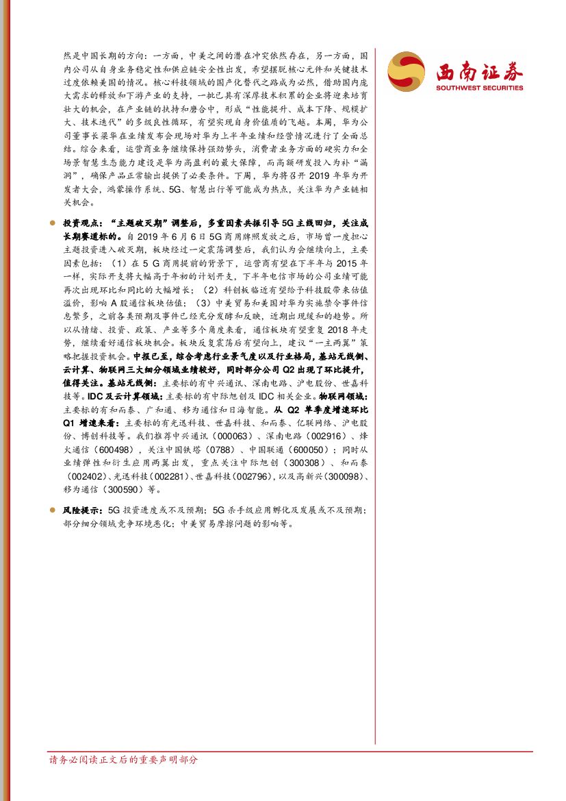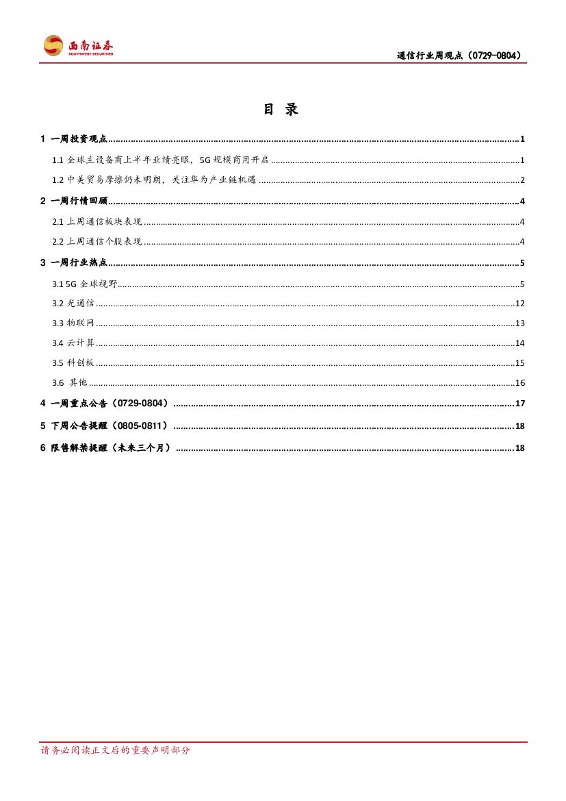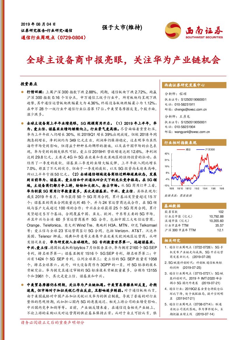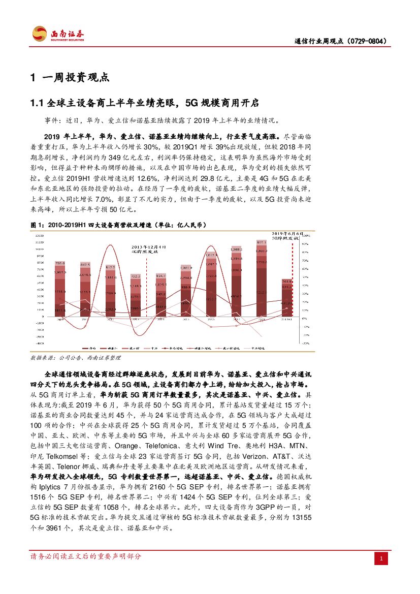 西南证券:通信行业周观点:全球主设备商中报亮眼,关注华为产业链机会.pdf