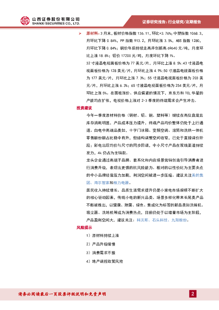 山西证券:家电行业月报:原材料价格高位盘桓,龙头企业强者恒强.pdf