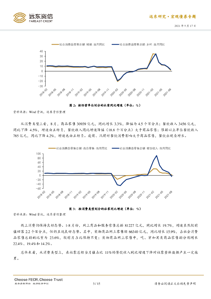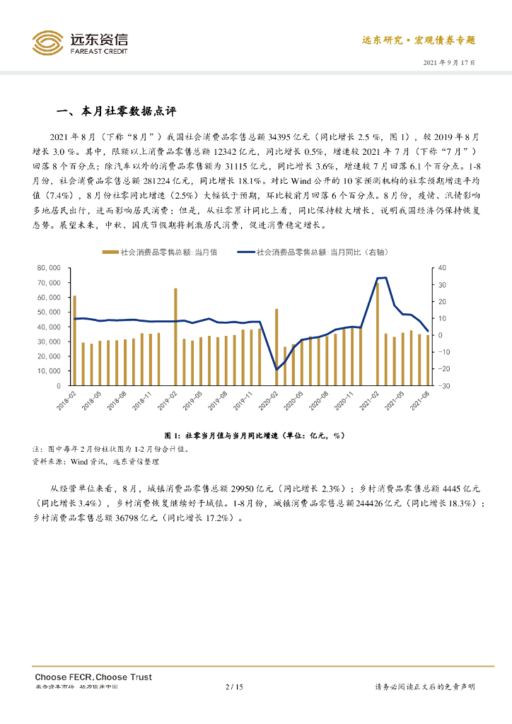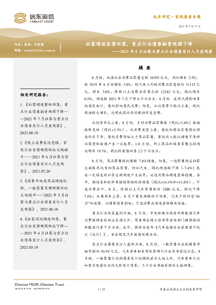 远东资信:2021年8月社零与重点行业债券发行人月度观察:社零增速显著回落,重点行业债券融资规模下降.pdf