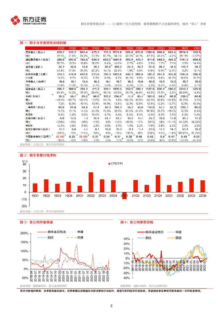 东方证券:顺丰控股(002352)-顺丰23Q1季报点评:Q1盈利17亿大超预期,重视顺周期下主业盈利弹性,维持“买入”评级.pdf