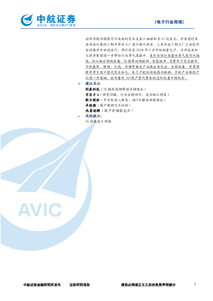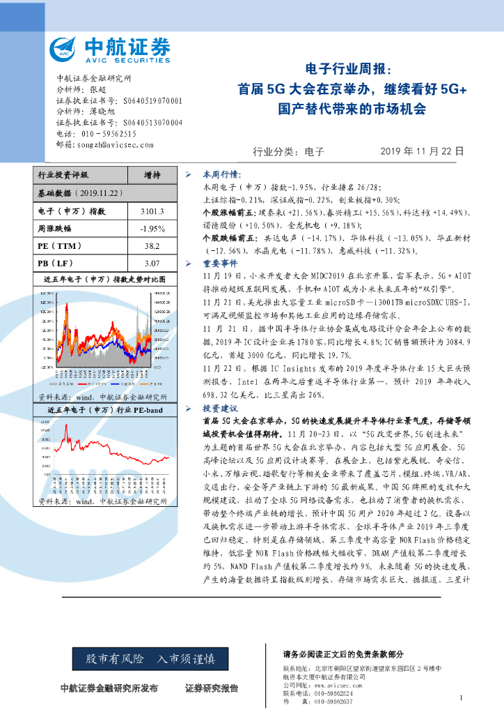 中航证券:电子行业周报:首届5G大会在京举办,继续看好5G+国产替代带来的市场机会.pdf