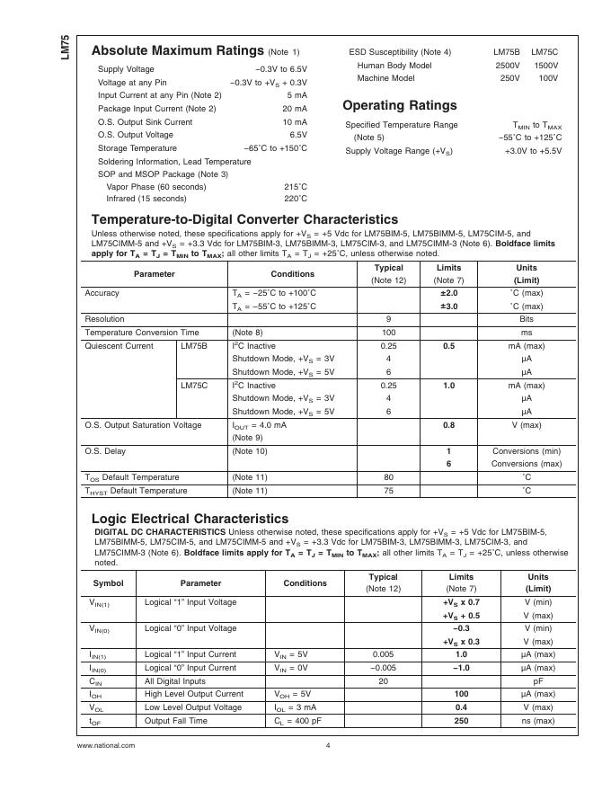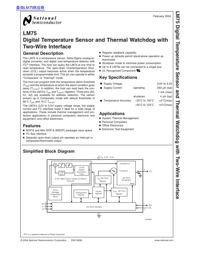 National Semiconductor LM75 Digital Temperature Sensor and Thermal Watchdog with Two-Wire Interface 数据手册.pdf