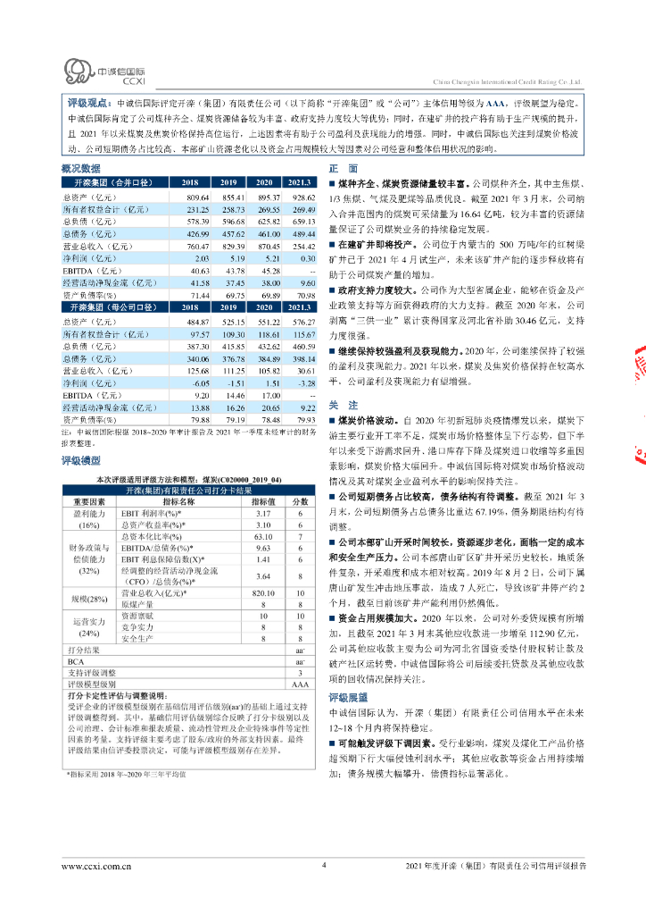 中诚信:2021年度开滦(集团)有限责任公司信用评级报告.pdf