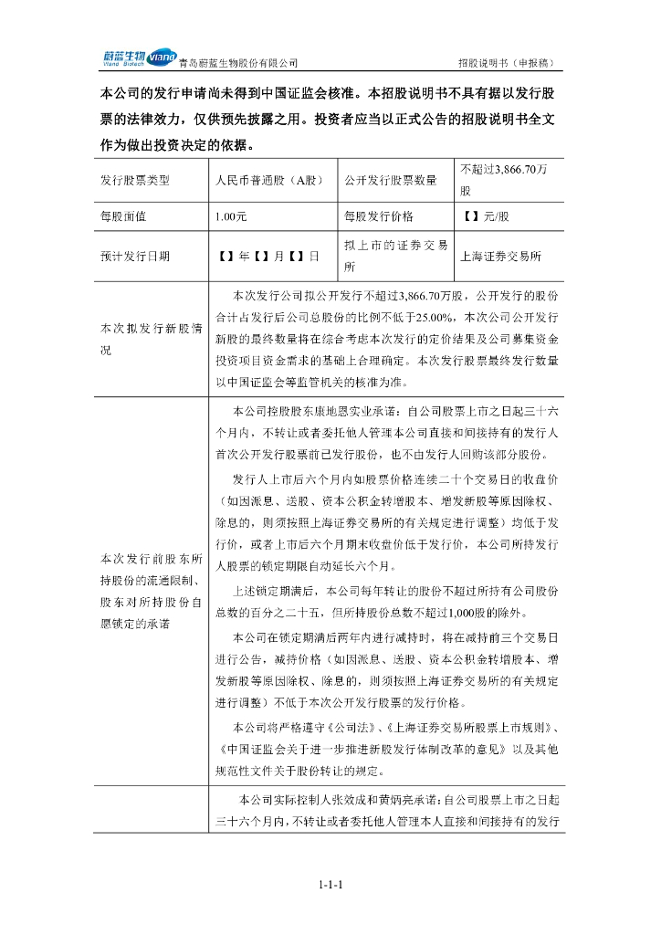 青岛蔚蓝生物股份有限公司上交所主板IPO上市招股说明书.pdf