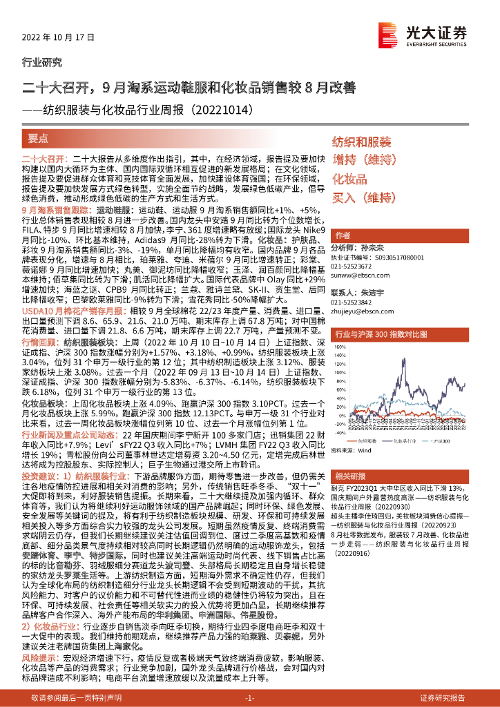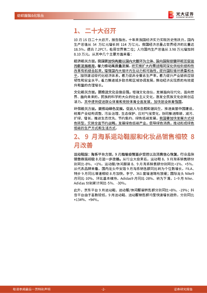 光大证券:纺织服装与化妆品行业周报:二十大召开,9月淘系运动鞋服和化妆品销售较8月改善.pdf
