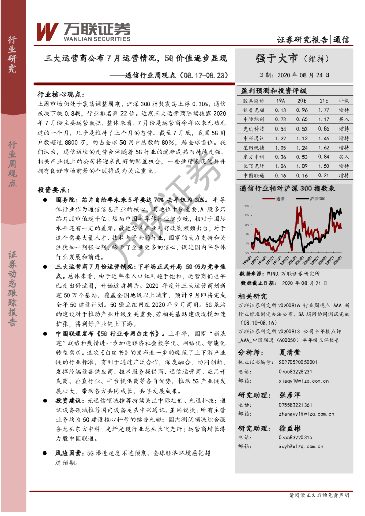 万联证券:通信行业周观点:三大运营商公布7月运营情况,5G价值逐步显现.pdf
