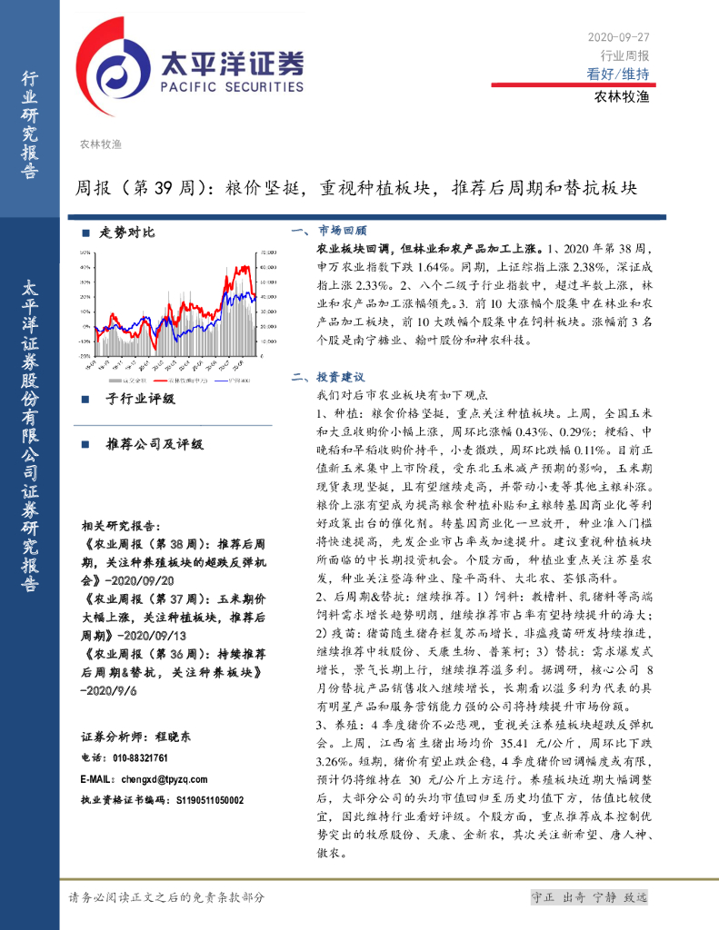 太平洋证券:农林牧渔周报(第39周):粮价坚挺,重视种植板块,推荐后周期和替抗板块.pdf