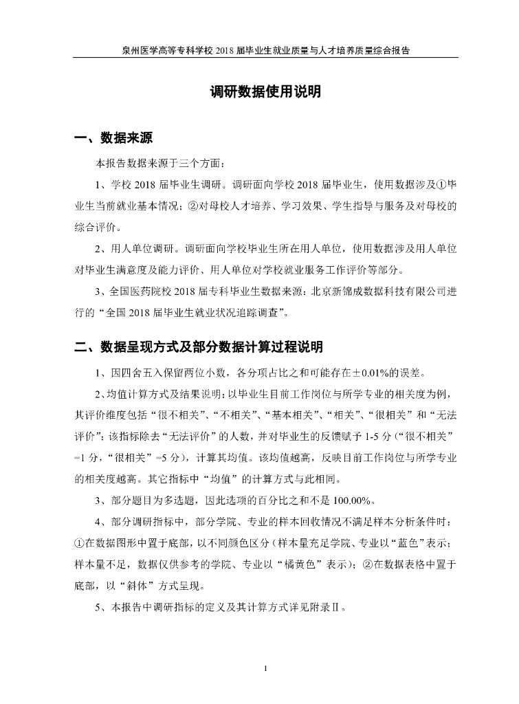 泉州医学高等专科学校2018届就业质量与人才培养质量综合报告.pdf
