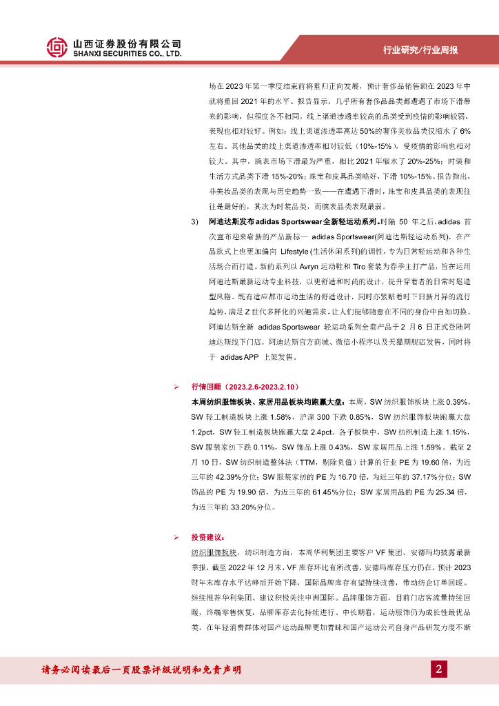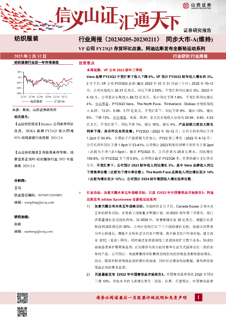 山西证券:纺织服装行业周报:VF公司FY23Q3存货环比改善,阿迪达斯发布全新轻运动系列.pdf