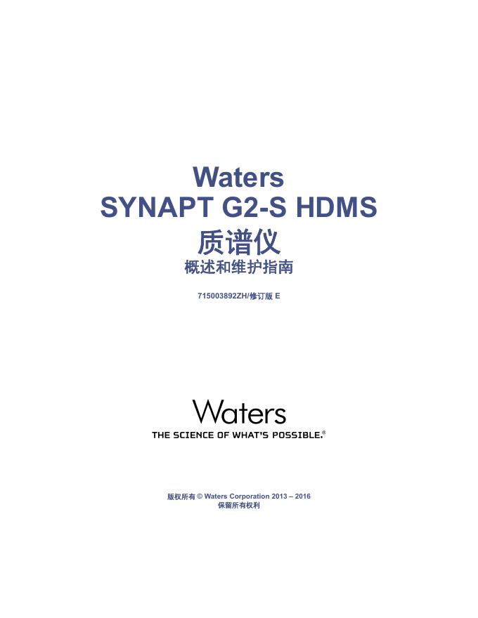 Waters SYNAPT G2-S HDMS 质谱仪 概述和维护指南.pdf