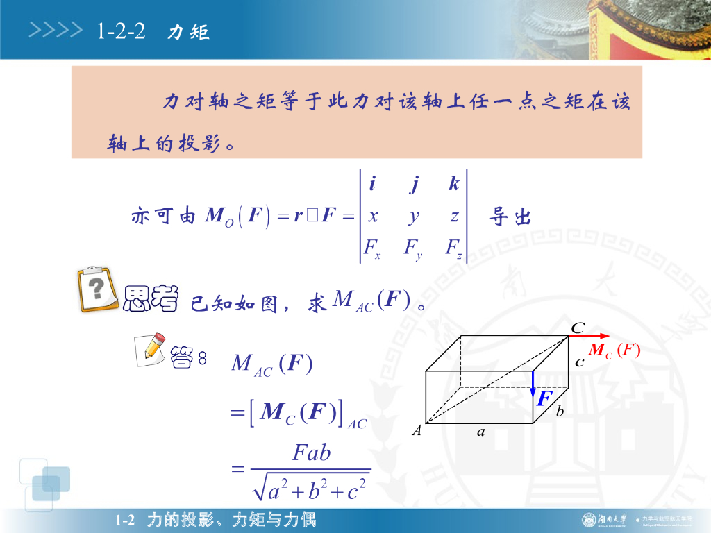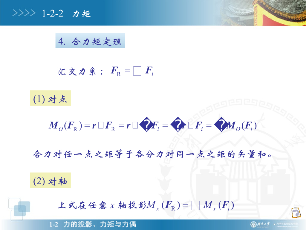 《理论力学》演示文稿-力的投影、力矩与力偶.pdf