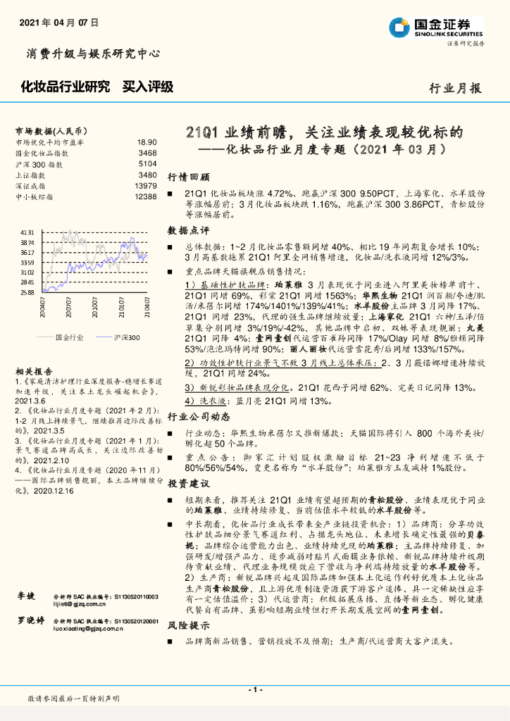 国金证券:化妆品行业月度专题(2021年03月):21Q1业绩前瞻,关注业绩表现较优标的.pdf