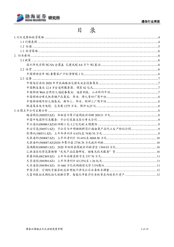 渤海证券:通信行业周报:运营商加快设备集采,5G建设提升行业景气度.pdf