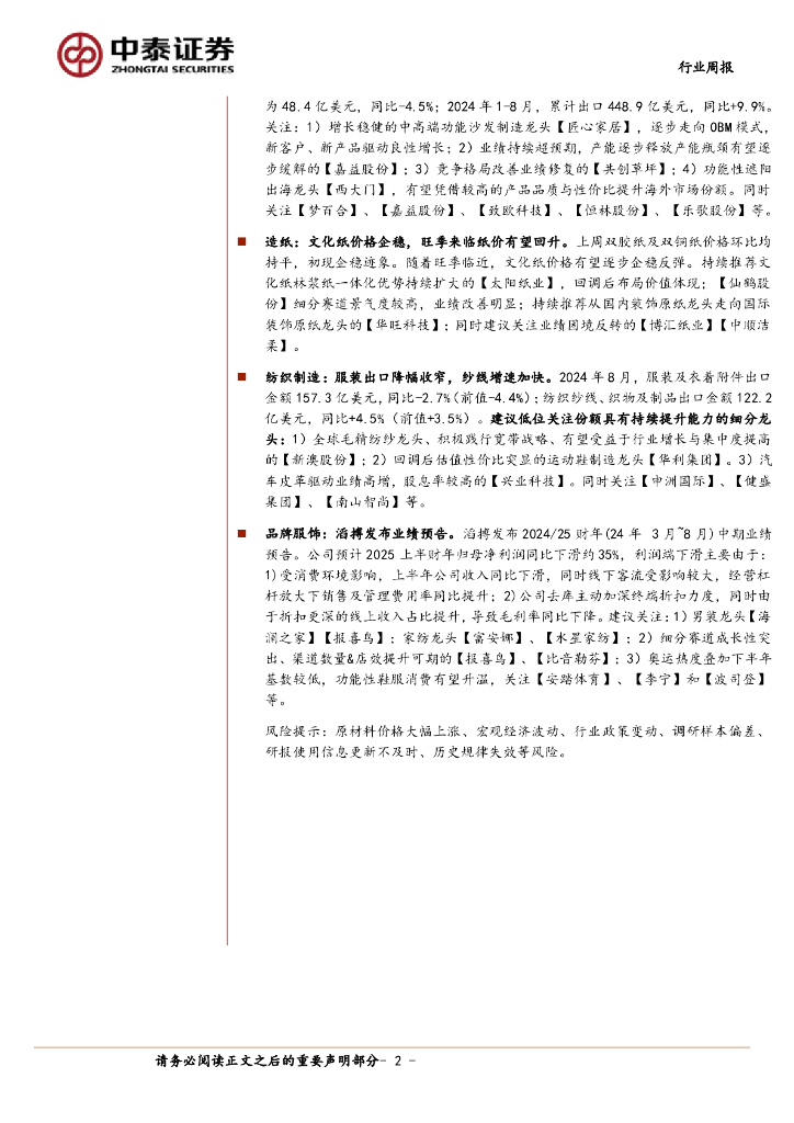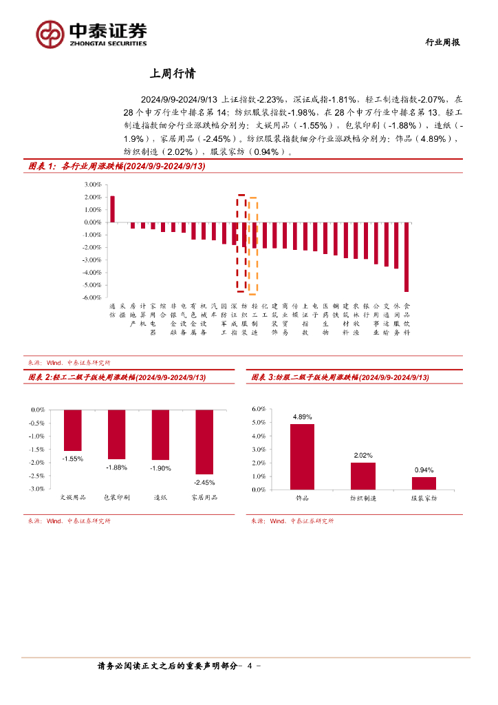 中泰证券:轻工制造及纺织服装行业周报:滔搏发布业绩预告,家居补贴继续落地期待需求修复.pdf