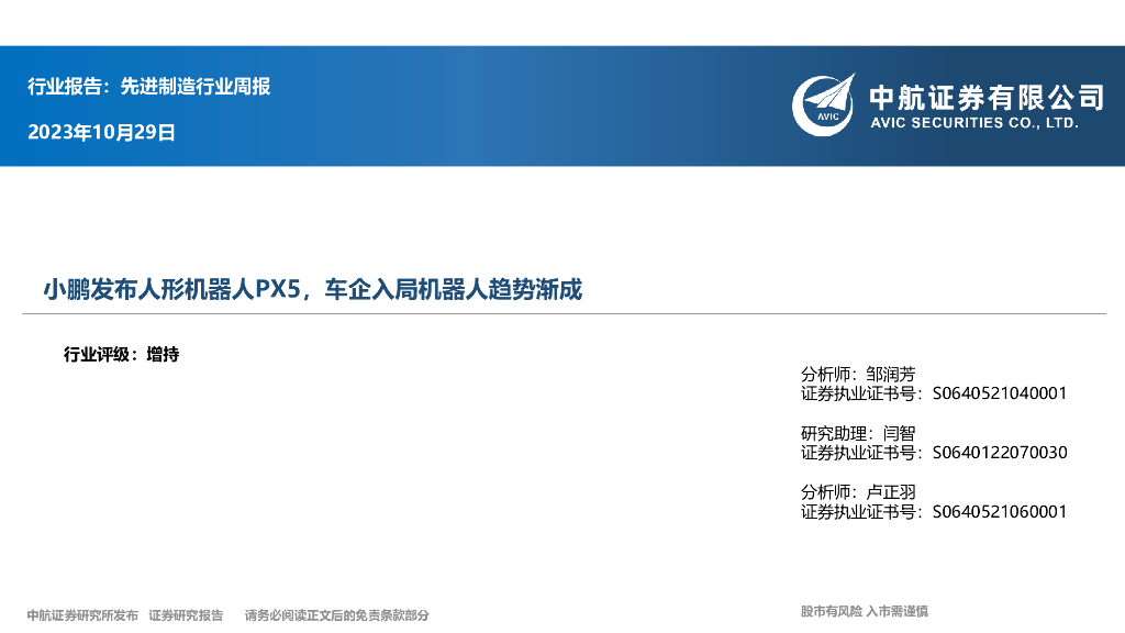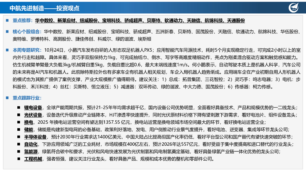 中航证券:先进制造行业周报:小鹏发布人形机器人PX5,车企入局机器人趋势渐成.pdf