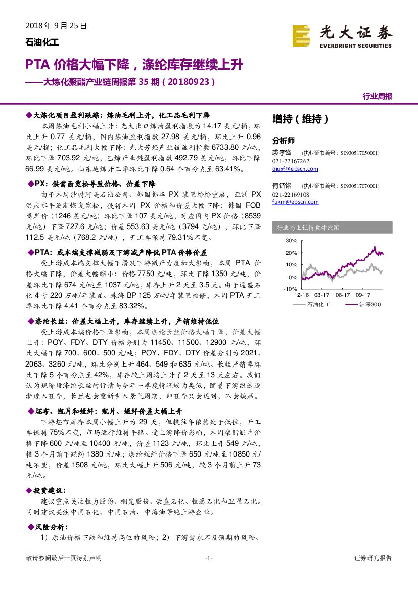 光大证券:大炼化聚酯产业链周报第35期:PTA价格大幅下降,涤纶库存继续上升.pdf