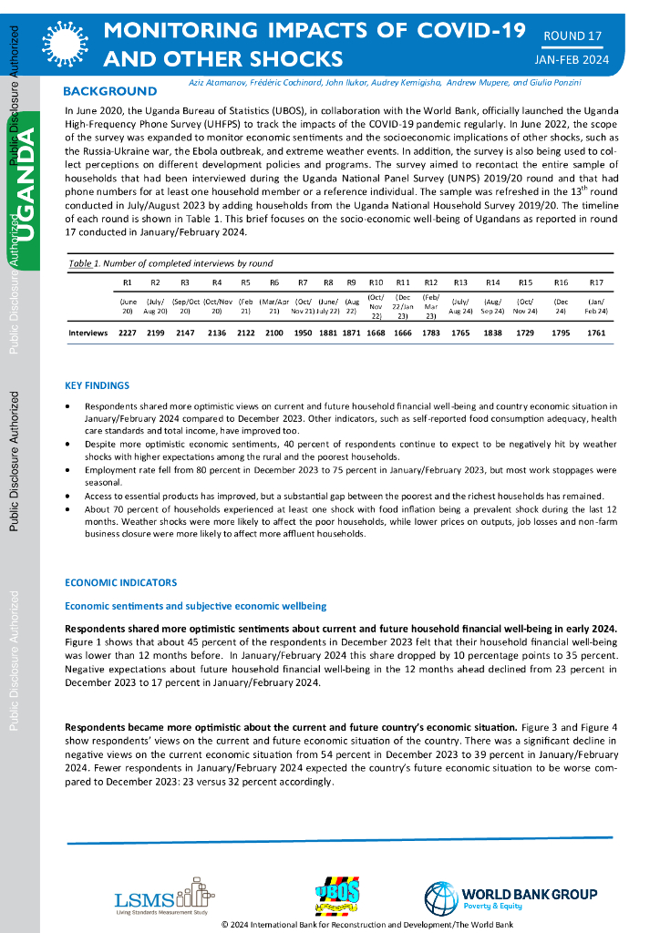 世界银行:2024监测冠状病毒病和其他冲击对乌干达家庭的影响报告(第17轮高频电话调查结果)(英文版).pdf
