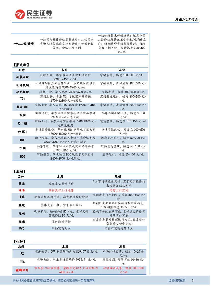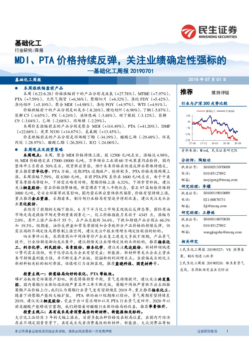 民生证券:基础化工周报:MDI、PTA价格持续反弹,关注业绩确定性强标的.pdf