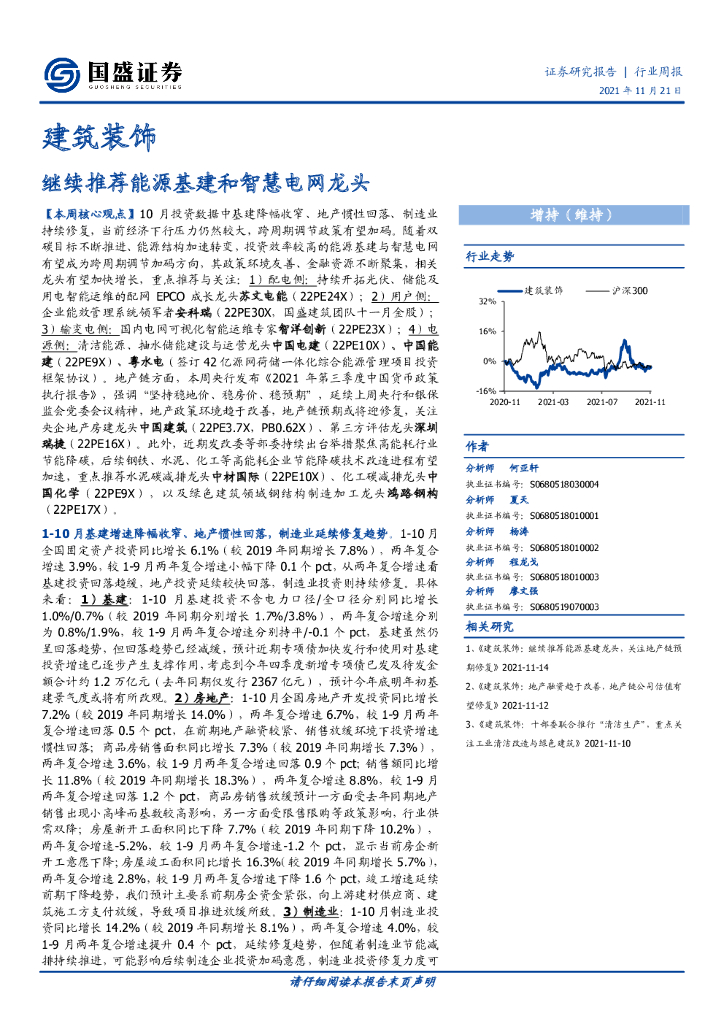 国盛证券:建筑装饰行业周报:继续推荐能源基建和智慧电网龙头.pdf