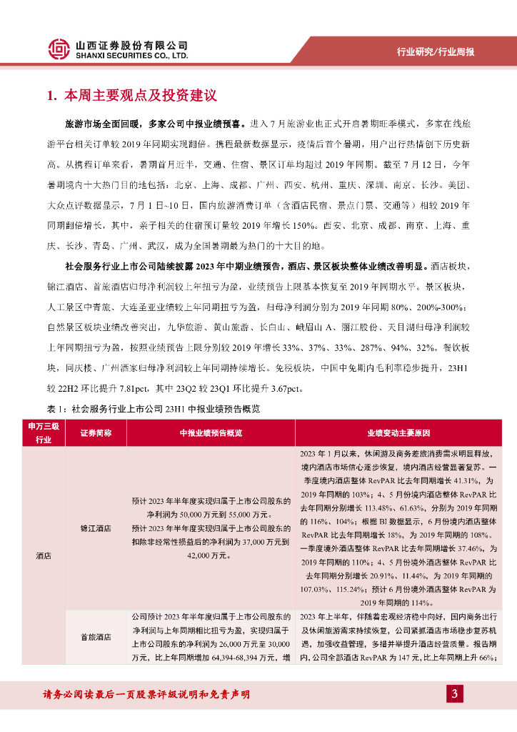 山西证券:消费者服务行业周报:旅游市场全面回暖,多家公司中报业绩预喜.pdf
