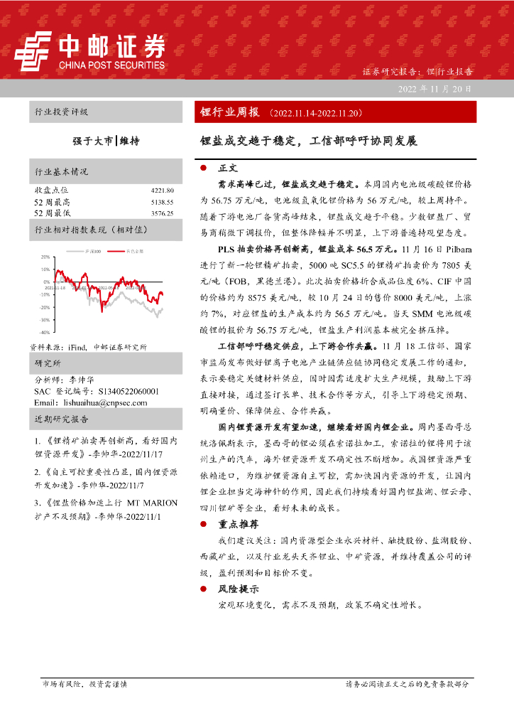 中邮证券:锂行业周报:锂盐成交趋于稳定,工信部呼吁协同发展.pdf