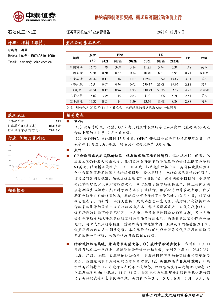 中泰证券:石油化工行业点评报告:供给端限制逐步实施,需求端有望拉动油价上行.pdf