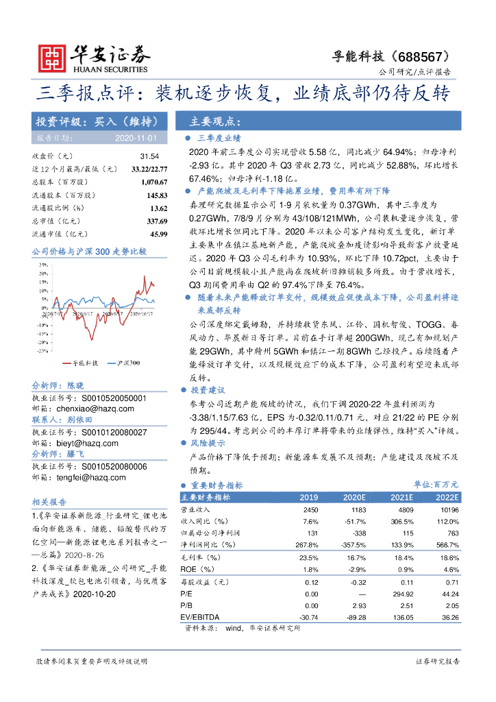 华安证券:孚能科技(688567)-三季报点评:装机逐步恢复,业绩底部仍待反转.pdf