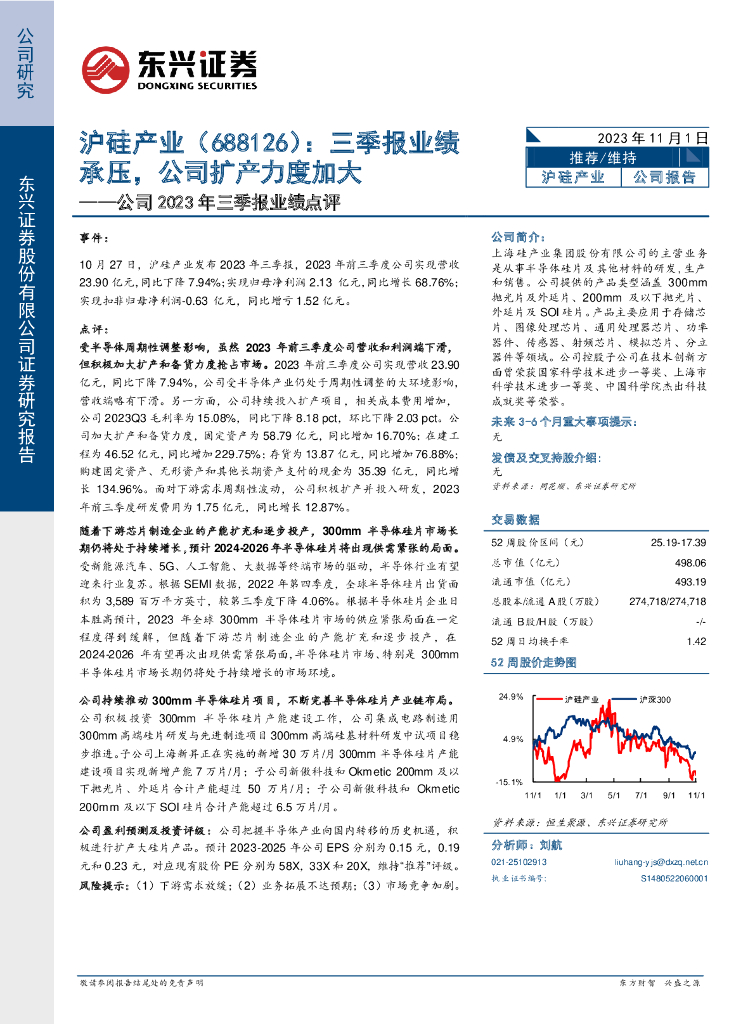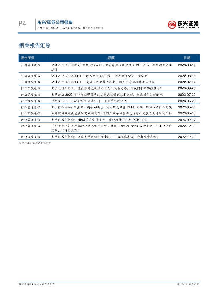 东兴证券:沪硅产业(688126)-公司2023年三季报业绩点评:三季报业绩承压,公司扩产力度加大.pdf