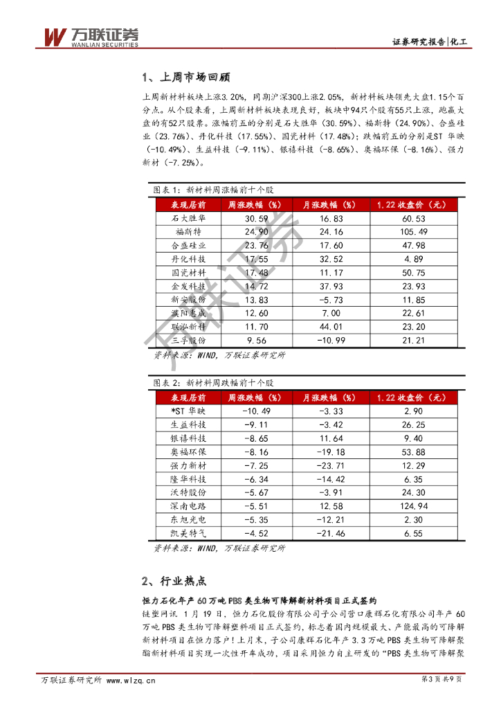 万联证券:化工:新材料板块周观点-可降解塑料热度不减,恒力大规模产能签约.pdf
