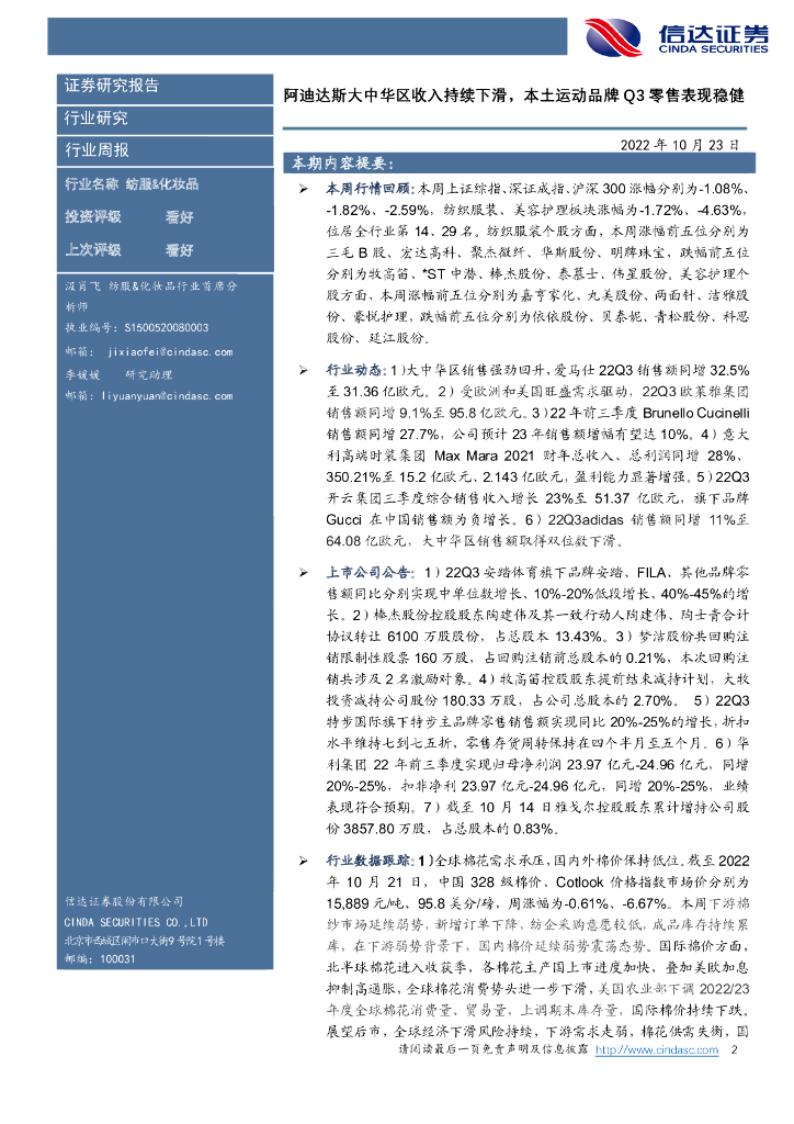 信达证券:纺织服装&化妆品行业周报:阿迪达斯大中华区收入持续下滑,本土运动品牌Q3零售表现稳健.pdf