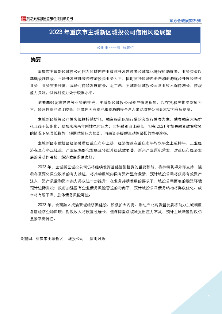 东方金诚:2023年重庆省城投企业信用风险展望.pdf