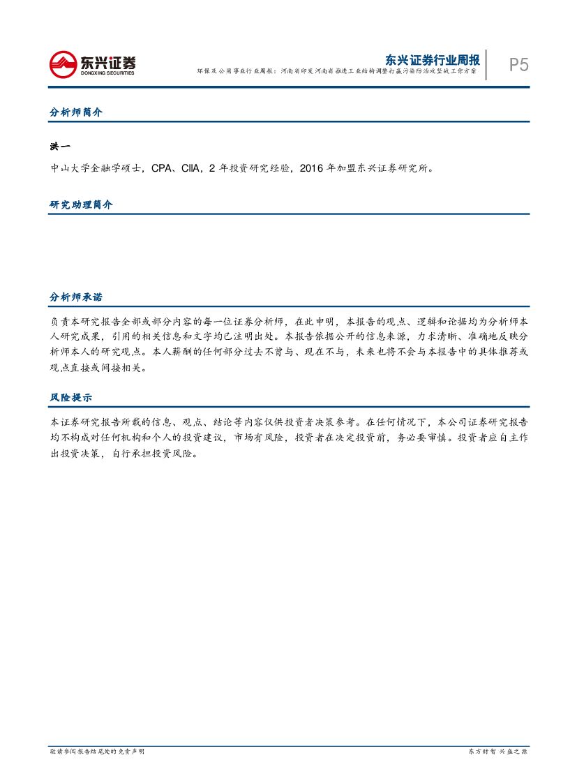 东兴证券:公用事业及环保行业周报:河南省印发河南省推进工业结构调整打赢污染防治攻坚战工作方案.pdf
