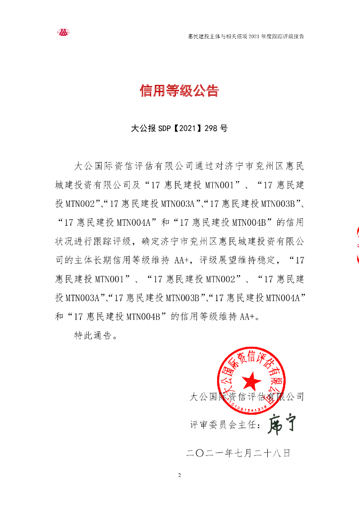 大公:济宁市兖州区惠民城建投资有限公司主体评级报告.pdf