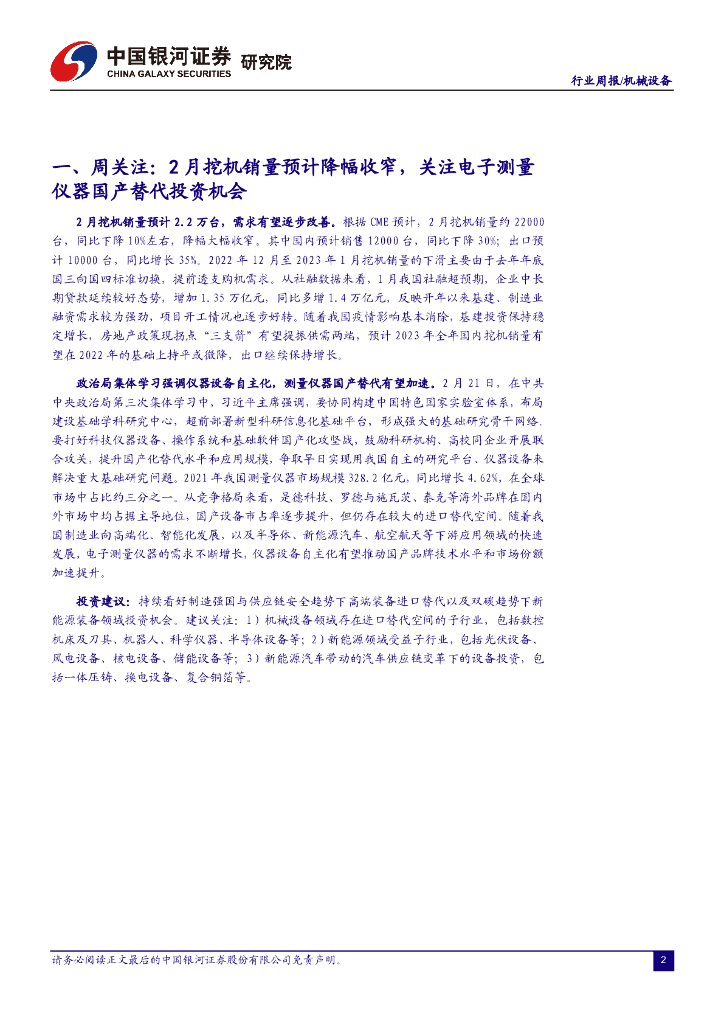 中国银河:机械设备行业周报:2月挖机销量预计降幅收窄,关注电子测量仪器国产替代投资机会.pdf