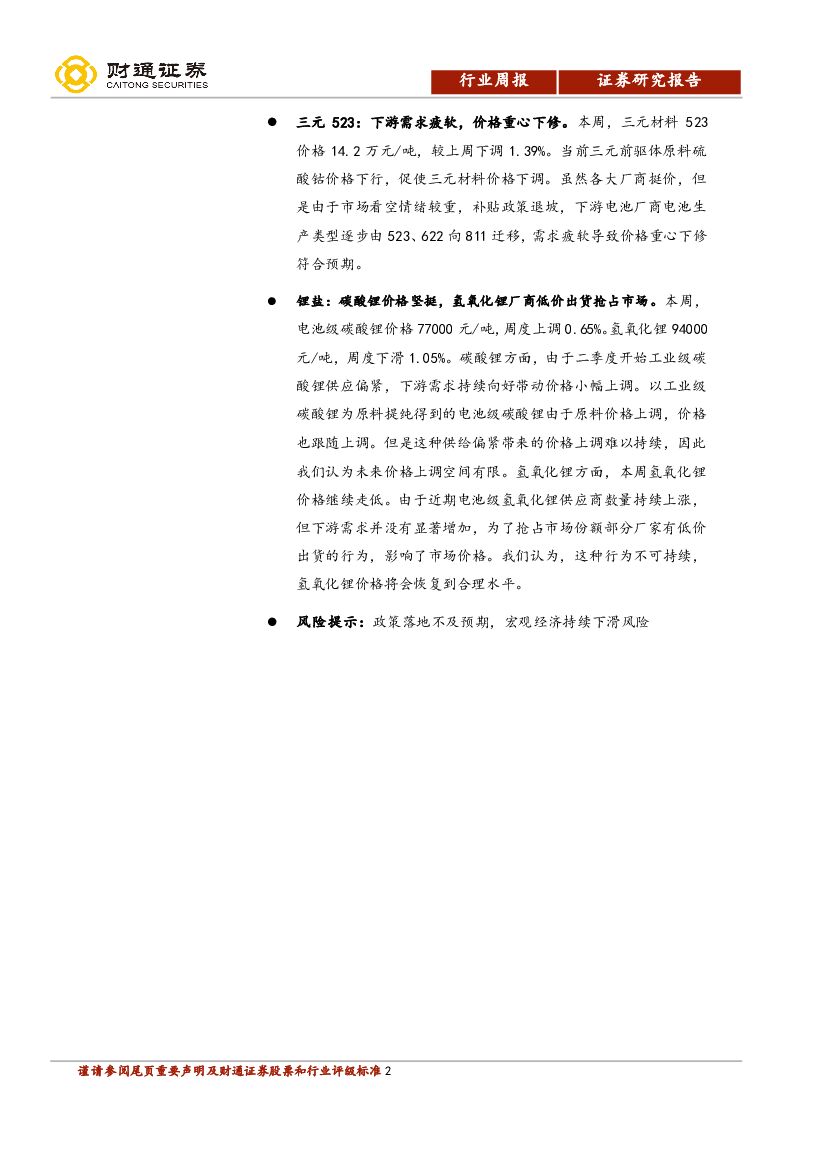 财通证券:锂钴周报:国内外钴价小幅下修,碳酸锂价格坚挺.pdf
