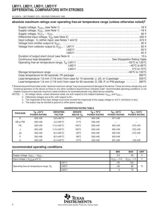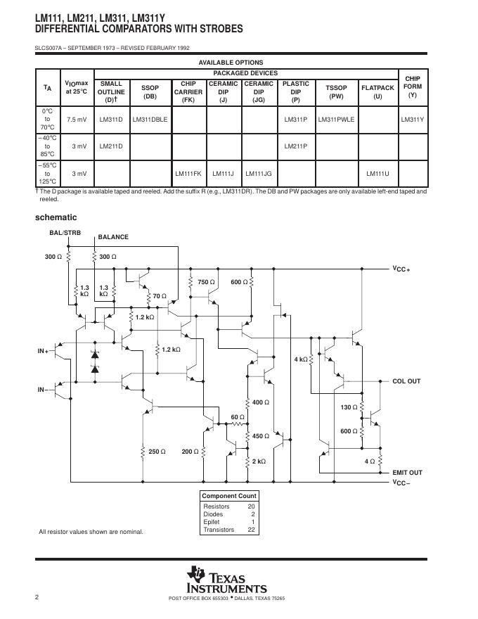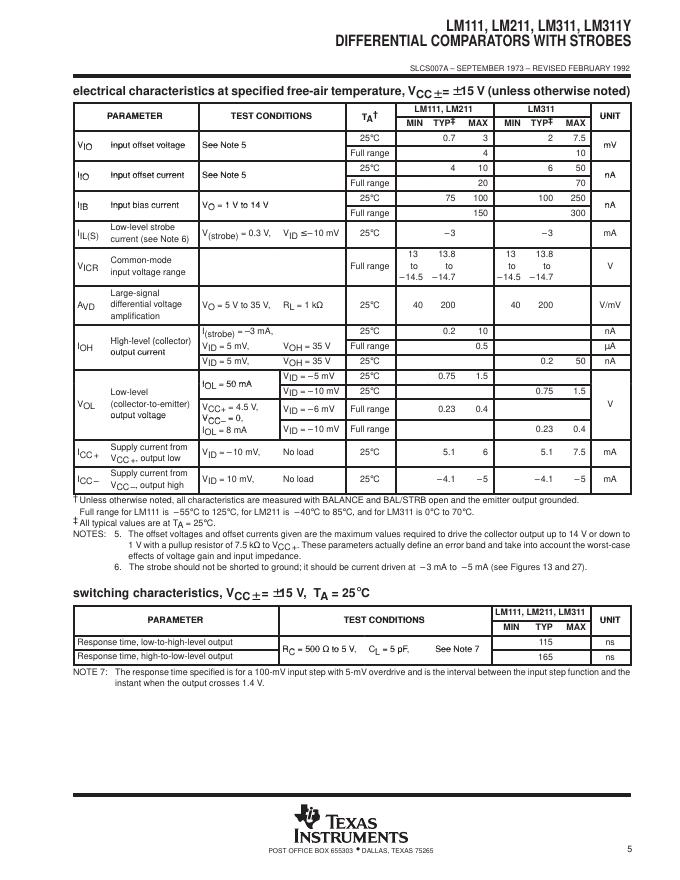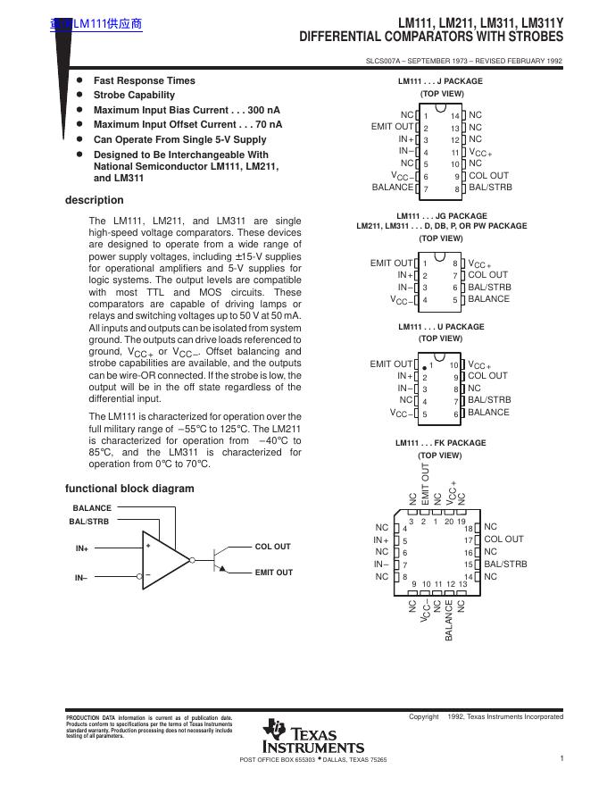 TEXAS INSTRUMENTS LM111, LM211, LM311, LM311Y 数据手册.pdf